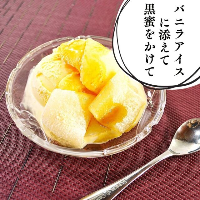 黒蜜をかけたりアイスクリームに添えたりアレンジレシピも楽しめます。地元直売所でも一番人気の商品です。お茶請けに、手土産に是非ご利用ください。